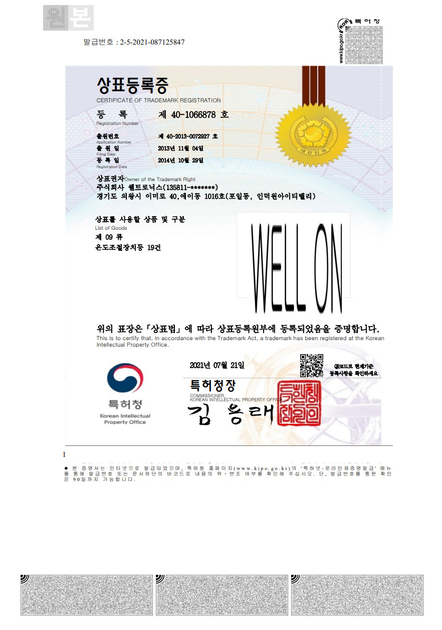 상표등록증(제40-1066878호)